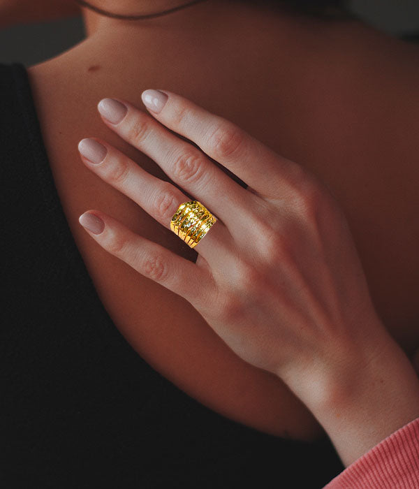Pour quelles occasions porter une bague épaisses en acier inoxydable doré ?Polyvalentes et élégantes, les bagues épaisses en acier inoxydable dorées ajustables conviennent à toutes les situations. Pour une tenue de bureau, elles apportent une touche de sophistication. Lors d’événements spéciaux, elles rehaussent votre style grâce à leur éclat discret mais raffinement affirmé. Enfin, elles s’accordent aussi parfaitement avec un look décontracté, faisant d’elles un accessoire indispensable à votre collection de bijoux.